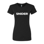Black Women's tee with a white SNIDER print. Soft cotton blend with a unisexy fit.